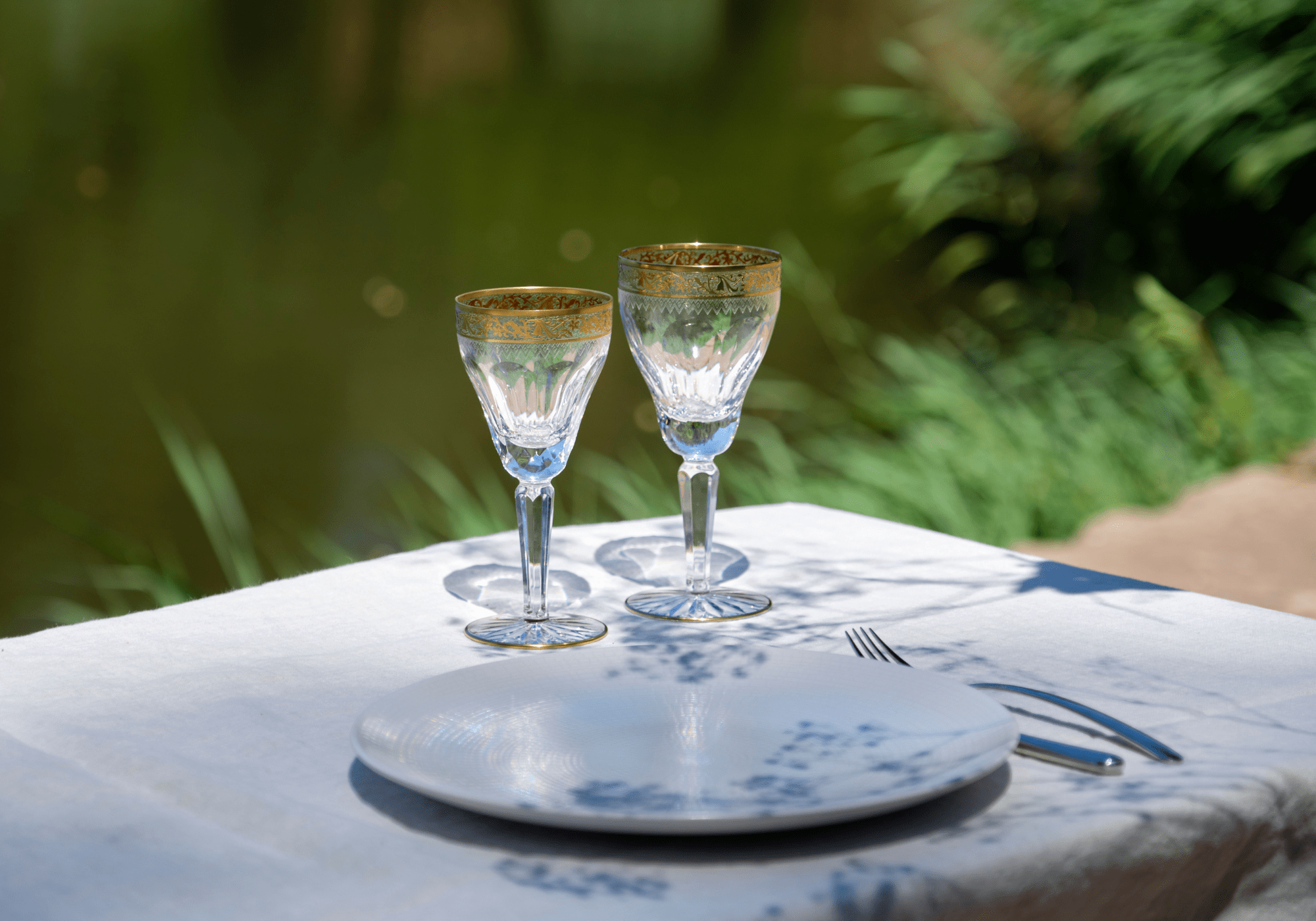 Illustre de notre Maison, le verre Opéra, orné d’une somptueuse incrustation or faite main, incarne la grandeur et la majesté des plus grandes scènes lyriques. Chaque pièce de la collection est une réelle œuvre d'art, capturant l'essence dramatique et la splendeur des opéras classiques. Sa brillance ainsi que sa prestance vous rappellera également les lustres scintillants des salles de concert, reflétant la lumière dans une danse harmonieuse.