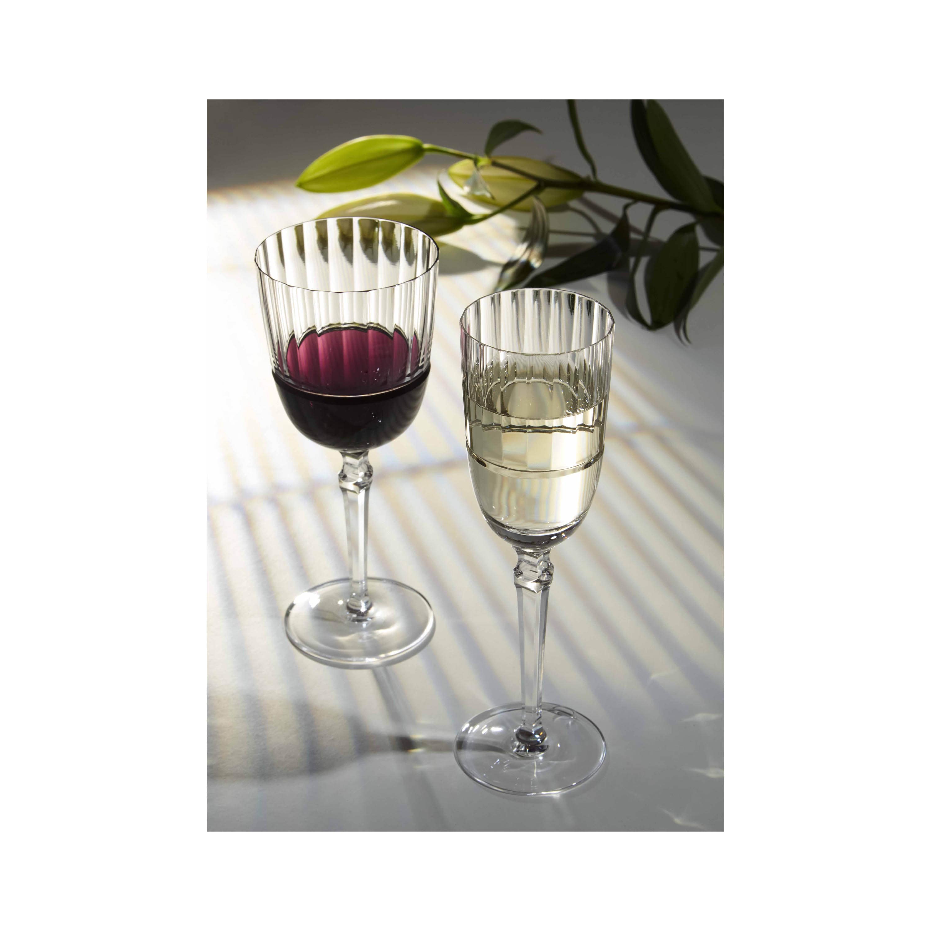 Set on our new Fusion shape, the Alya collection distinguishes itself by its modern design and daring junction. The bowl of the glass leaves place to its simple and plain design, letting the crystal breathe, enhanced by the addition of a coloured layer. The whole is lengthened by the particularly thin flat cuts soaring up to the rim of the glass, for a long and keen expanse.
